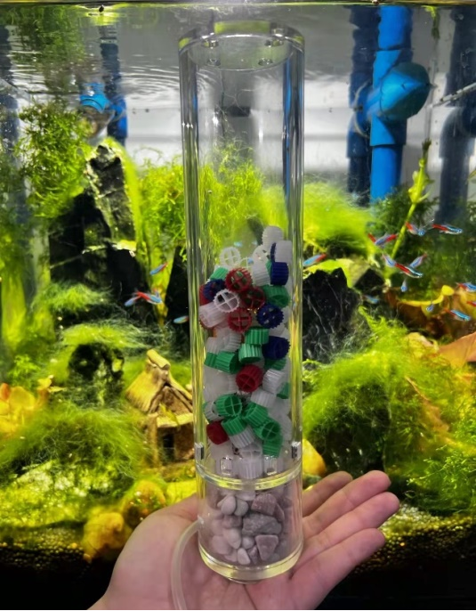 谈起这项发明的背景,张源介绍说:“我家有个大鱼缸,每周都需要换水,一次就要倒掉大半缸水,又麻烦又浪费,我就想利用专业知识解决水族箱需要每周频繁换水的问题。在老师和学长学姐的帮助下,我完成了这个装置的制作。”装置制作好后,张源先在自己家的鱼缸里运行,半年过去了,张源家的鱼儿活蹦乱跳、鱼缸没有换水,去实验室化验鱼缸里的水质,几乎检测不到氨氮与亚硝酸盐氮。试验成功、装置合格!