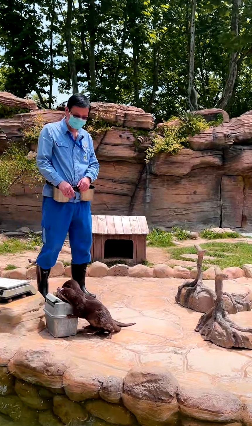在5月22日国际生物多样性日的直播中,两只水獭展示了垃圾分类的小本领。水獭是非常典型的环境指示物种,一般来说,如果某水域野外有水獭种群生活,就说明当地水质良好。俞锦华介绍,“在宣传环保的时候,我们非常注重以水獭作为代表,因此特地设计让我们的水塔宝宝去捡垃圾,这个简单的行为展示能为游客加强环保理念的教育,对于小朋友来说也蛮有启发的”。