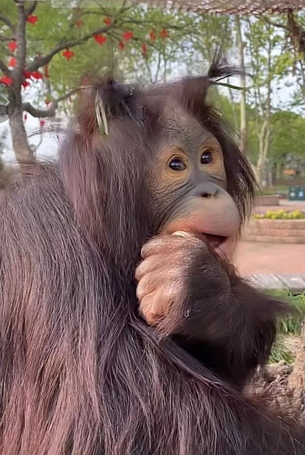 为什么葡萄会这么出圈?张淑雯认为是由于葡萄的“反差萌”。在寻常人印象中,猩猩可能都是捶胸顿足的活泼形象。其实,红猩猩与之恰恰相反,它们性格温顺,像葡萄更是乖巧娇憨,不论是喝奶进食,还是与“葡萄妈”的互动,网友们评价它的一举一动十分“淑女”。