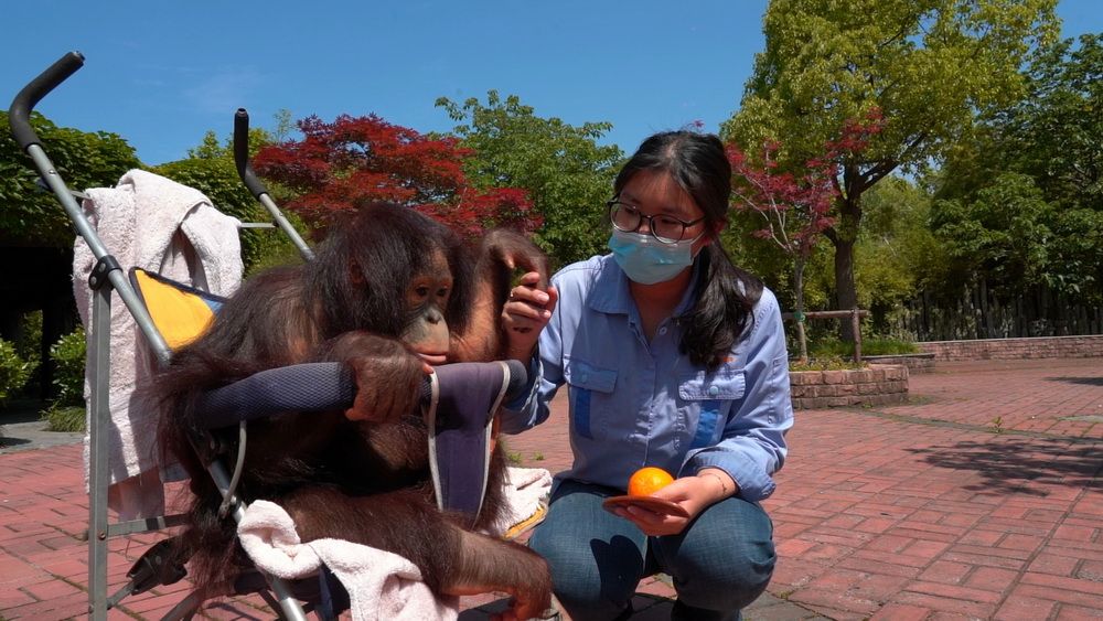今年23岁的张淑雯在上海野生动物园已经工作一年半,几乎刚入园就开始负责葡萄的喂养。在直播视频中可以看到,葡萄一直黏着张淑雯——要么抱着,要么牵着手一起走——张淑雯也因此被网友称为“葡萄妈”。据同事介绍,3月初刚闭园时,张淑雯并不需要留守在动物园内,但她一直主动请求要来上班,“带葡萄就像带孩子,(张淑雯)看不到它,心里也会想念”。