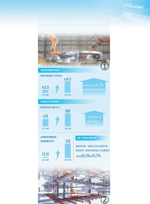 “我国拥有全球最完整的工业体系,处于不同发展阶段的工业企业数量众多,且数字化转型需求强烈,这就为国产软件优化迭代创造了丰富的应用场景。”吕卫锋说。截至去年底,全国工业企业关键工序数控化率、数字化研发设计工具普及率分别达55.3%和74.7%,比2012年分别提高30.7个和25.9个百分点。随着软件加速向垂直行业渗透,在加快传统产业数字化转型的同时,也将为软件产业提供更大的市场空间。