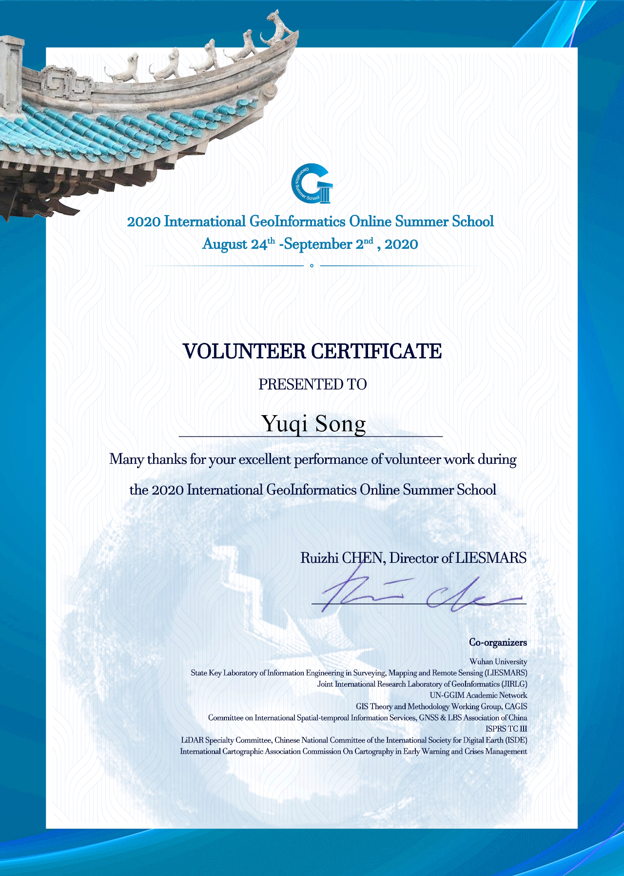 ▲志愿证书