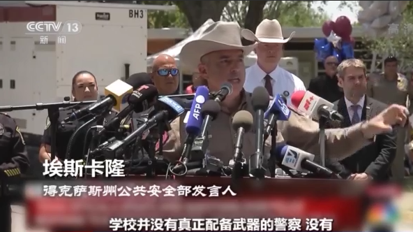 得克萨斯州公共安全部发言人 埃斯卡隆:学校并没有真正配备武器的警察,没有。