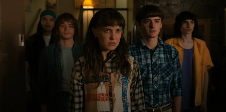 四条主线齐头并进,几处高潮也带来激动人心的效果。更昂贵更长更热闹的第四季,开播前先以超常的长度和预算——每集时长超过60分钟,单集预算超过3000万美元——先声夺人。特效看上去更有钱了,取景地变多,沉浸在怀旧里的时间更长。但这样能为一部剧锦上添花吗?在Neflix平台以观看总时长为标准的计算方式下,单集更长有助于排名靠前,所以把观众基础雄厚的剧拍长有天然优势。预算和质量则未必是正相关。七集九小时的时间里,我经常忍不住走神。因为即使一部怀旧向的剧,也容不下太多粗糙的人物关系和陈词滥调的人物成长故事。