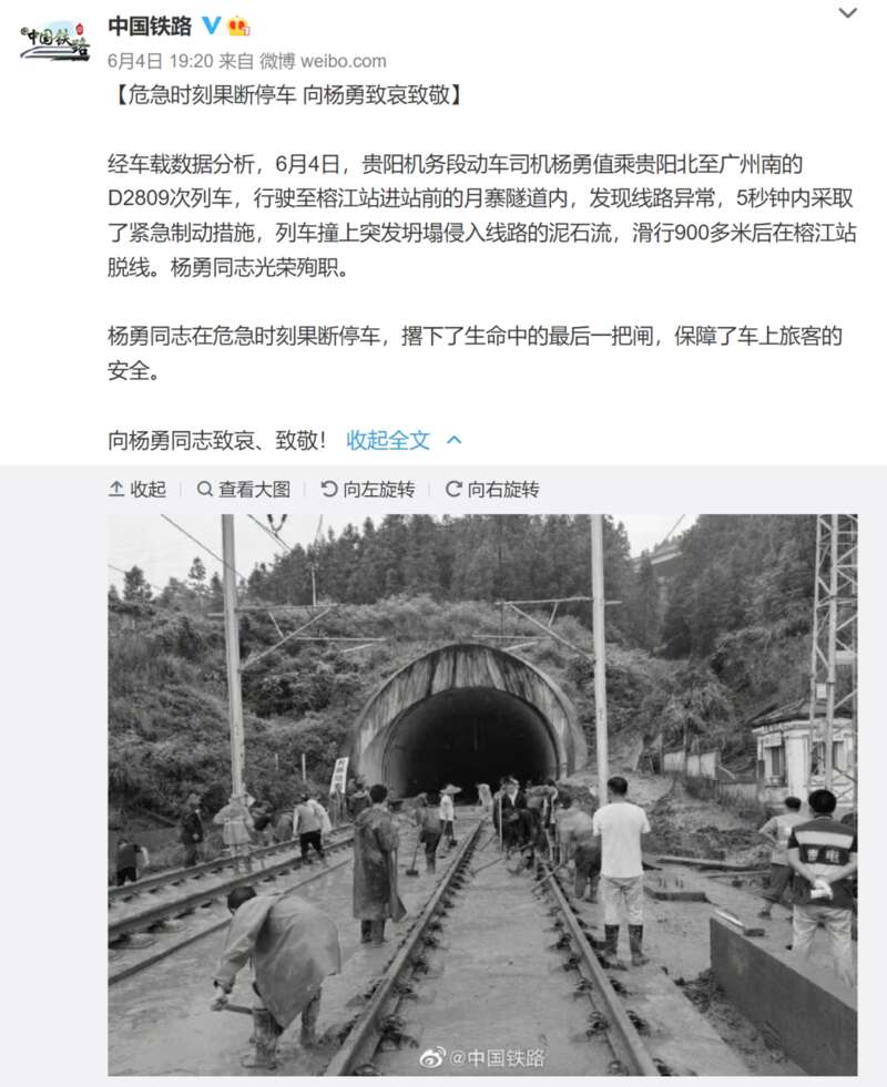 4日晚,中国国家铁路集团有限公司官方微博发文,危急时刻果断停车,向杨勇致哀致敬。