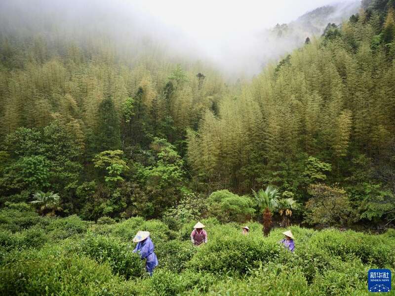 福建省武夷山市桐木村工人在采茶(5月10日摄)。新华社记者 姜克红 摄