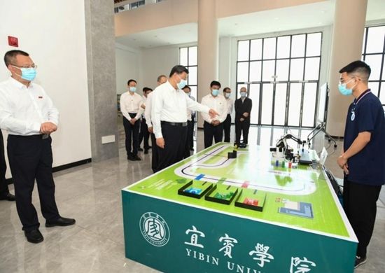 8日,正在四川考察调研的习近平总书记来到宜宾学院,在学校招聘大厅内向教师、学生、企业负责人了解企业招工的需求和毕业生签约率等情况。