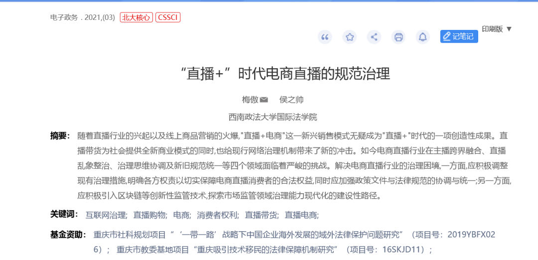 侯之帅论文《“直播+”时代电商直播的规范治理》