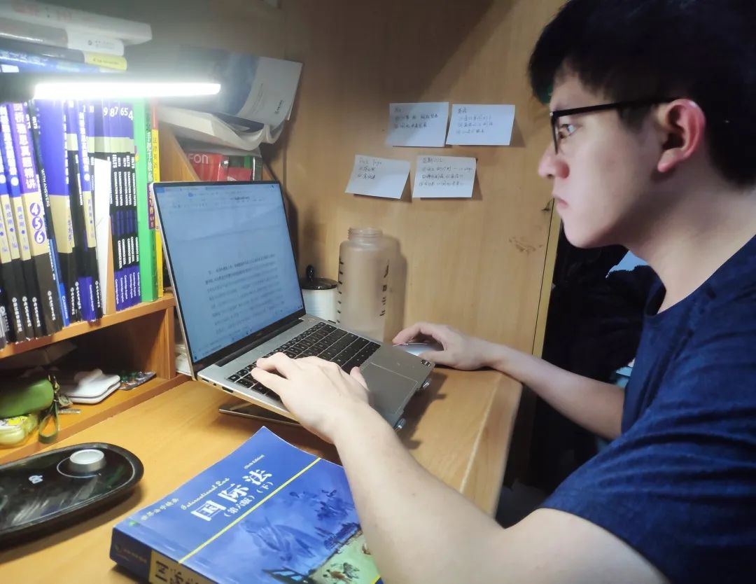 回顾研究生两年,最大的迷茫就是研究生毕业之后究竟是深造学术,还是成为一名诉讼律师。这个问题持续困扰了侯之帅大半个学期,最后还是他的不满足获胜了。他下定决心读博充实自己,但那时候距离考核也只有一个半月了。 时间紧,任务重,他将一个半月的学习安排得十分紧凑。白天大部分时间都是在阅读文献资料,剩余时间就是在做英语题、练习英语口语。“交叉着来嘛,也算是换换脑子。”一个半月时间,侯之帅不仅将三国法教材重读一遍,还将学院的博导论文抽丝剥茧阅读了一遍,从框架到具体内容,他都做了大量笔记。国际法的学习离不开对于现实问题的关注和思考,侯之帅主动搜集资料,并积极和同学从国际法视角去分析国际大事、时政热点。