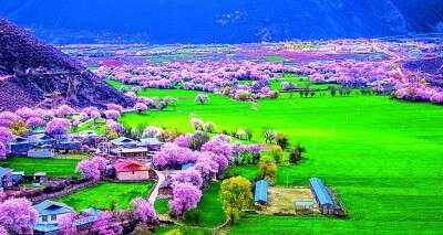 波密桃花谷桃花盛开 西藏林芝市波密桃花谷,面积约为155.04平方千米,平均海拔2740米。每年3月到4月中旬,这里的桃花陆续开放,人文景观丰富的雪山下、村落间随处都是桃花的踪迹。作家江子在散文《去林芝看桃花》中写道:“我看到一路上它大片大片地盛开。它向着我奔跑。好像是它终于认出我来,然后相邀更多的桃花来与我相认……”央青占堆(藏族)摄/光明图片