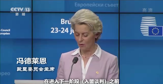 欧盟委员会主席 冯德莱恩:在进入下一阶段(入盟谈判)之前,各国都必须做足功课。