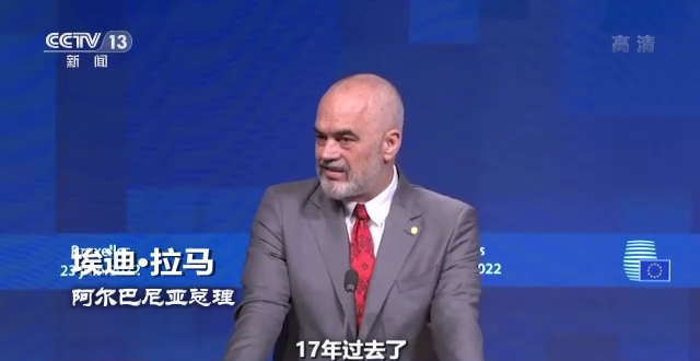 阿尔巴尼亚总理 埃迪·拉马:17年过去了,(北马其顿)仍然作为欧盟候选国在等候着开启入盟谈判。它甚至为此改变了国家的名字,但并没有带来任何改变。试想一下,为了加入欧盟要改变自己国家的名字,换作法国、意大利能接受吗?阿尔巴尼亚也等待了8年时间。