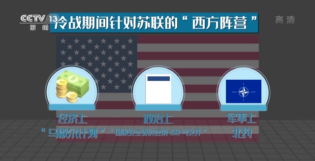 二战后,美国曾凭借经济上的“马歇尔计划”、政治上的“国家安全委员会第68号文件”以及军事上的北约构建了冷战期间针对苏联的“西方阵营”。