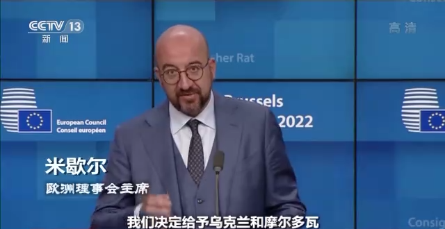 欧洲理事会主席 米歇尔:我们决定给予乌克兰和摩尔多瓦欧盟候选国地位。