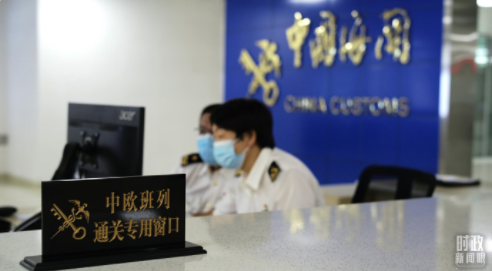 △中欧班列通关专用窗口。(总台央视记者彭汉明拍摄)