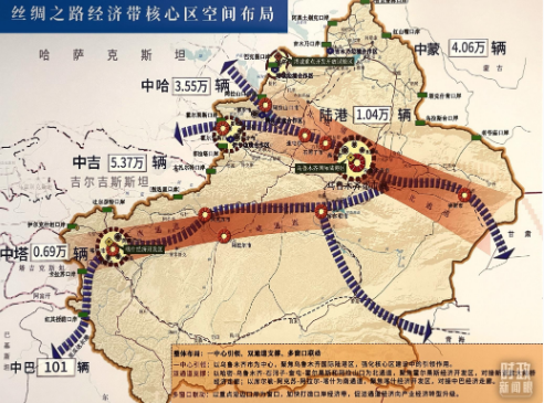 2014年4月新疆考察途中,总书记指出,“新疆在建设丝绸之路经济带中具有不可替代的地位和作用”。一个月后,中央政治局会议提出,“着力打造新疆丝绸之路经济带核心区”。