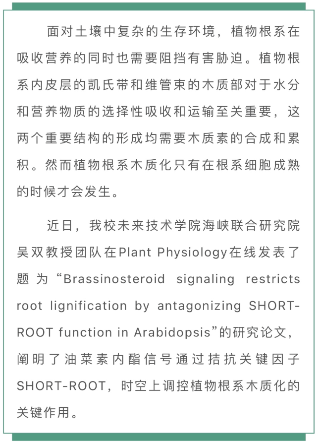 我校未来技术学院 海峡联合研究院吴双团队揭示植物根系木质化起始的分子机制