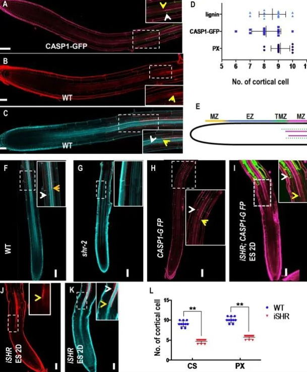 木质化是植物根系成熟的标志事件之一。植物根的木质化包括内皮层凯氏带的形成和维管束木质部的形成,有趣的是,这两个过程在时空上保持同步。(图1)