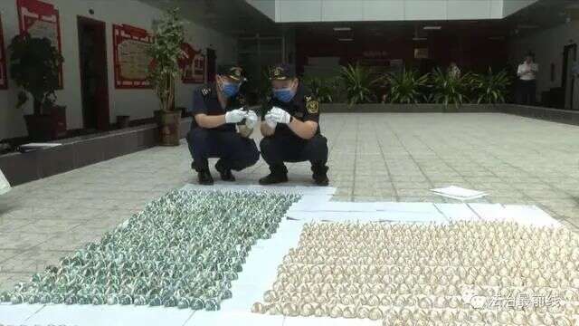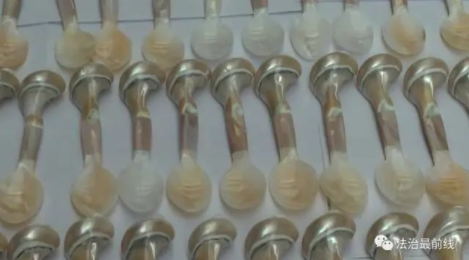 友谊关海关监管一科查验关员李佳赛:我们开箱查验发现螺形勺子290个,螺形工艺品702个,由于该批货物中螺形工艺品、螺形勺子的勺柄部分,带有花纹并有放射状纹理,疑似为贝壳或海螺制品。