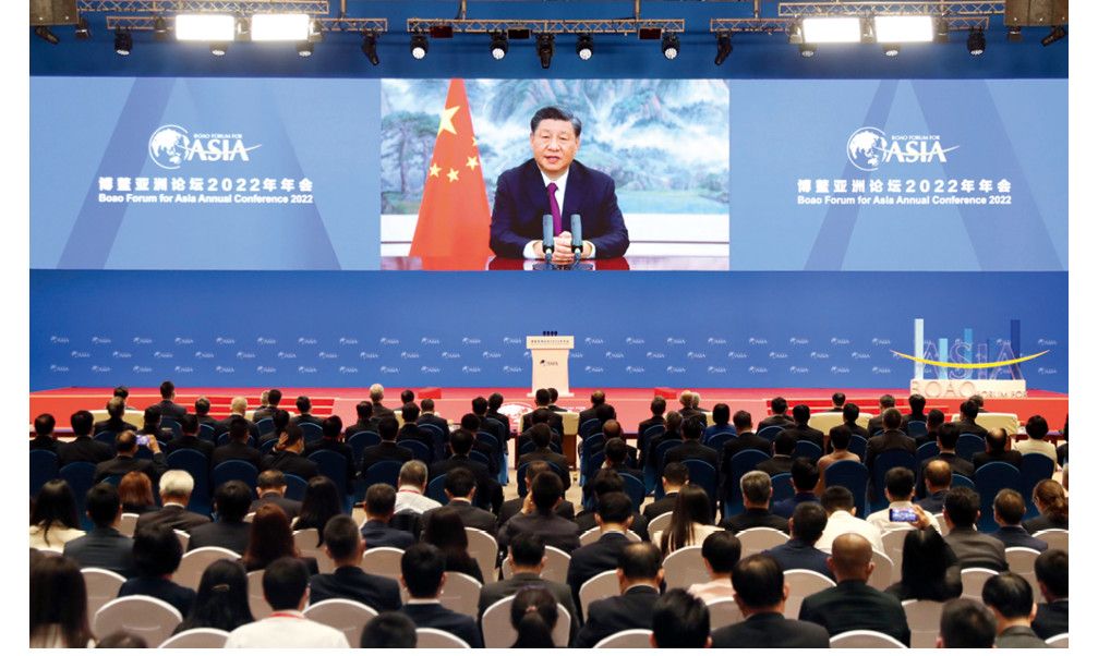 2022年4月21日,博鳌亚洲论坛2022年年会开幕式在海南博鳌举行,国家主席习近平以视频方式发表主旨演讲。年会上,与会嘉宾围绕数字经济、国际合作与全球治理等6项议题进行对话和交流,探讨推进全球经济可持续发展,数字经济成为关注焦点。图/新华社记者 丁海涛 摄