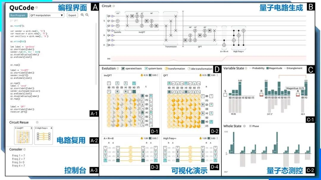 亮点二是友好的编程环境。量子编程需要用户对量子计算有一定了解,为了降低非专业用户的量子计算开发门槛,提高量子程序的可理解性,太元量子云平台自研了交互式可视化编程框架。太元云平台的主要开发者,谭思危博士表示,太元云平台向用户可视化地展示量子电路编译和量子计算结果,操作更加便捷智能,而这也是首个将量子计算过程可视化的编程框架。