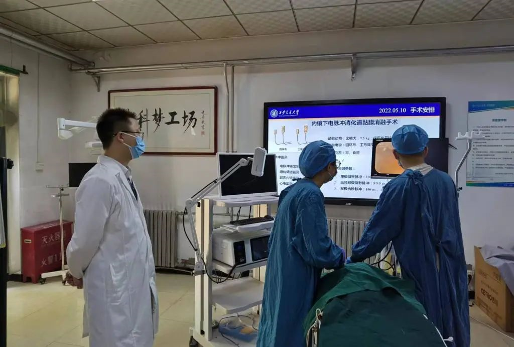 正是有这样的紧迫感和使命感,团队在研发初期就非常注重关键元器件和配套设备的国产化。做内镜下电脉冲黏膜消融手术需要用到的软硬件设备包括消化内镜、小探头超声内镜、电脉冲消融装置、消融电极、治疗规划系统等几个部分。消化内镜和超声内镜长期以来受国外品牌垄断,国产消化内镜技术市场份额相对较低。 “我们自主研发的医疗创新技术,必须得用国产设备作为配套!”这是团队成员的共识。在项目研发过程中,团队先后与西川医疗、深圳英美达、深圳开立等国产消化内镜公司进行技术合作,共同推动国产消化内镜技术的研究与进步。