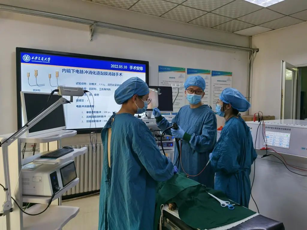 功夫不负有心人。 历经多年攻关,团队目前已研发出复合脉冲电场消融系统和适用于不同环境的内镜下脉冲电场消融电极,在全球率先提出完整的消化内镜下经自然腔道脉冲电场消融技术应用解决方案, 相关研究成果曾在美国外科医师年会(ACS)、消化疾病周(DDW)等国际舞台上进行汇报交流。