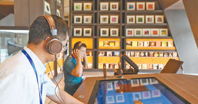 参观者在中国国家版本馆广州分馆进行视听体验。新华社记者 刘大伟摄