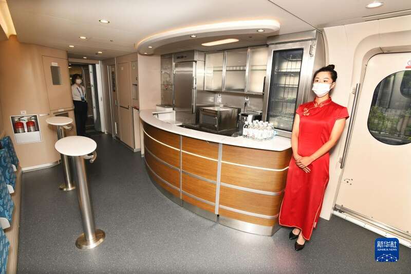 这是8月5日在位于山东省青岛市的中车四方股份公司拍摄的雅万高铁高速动车组餐车内部。