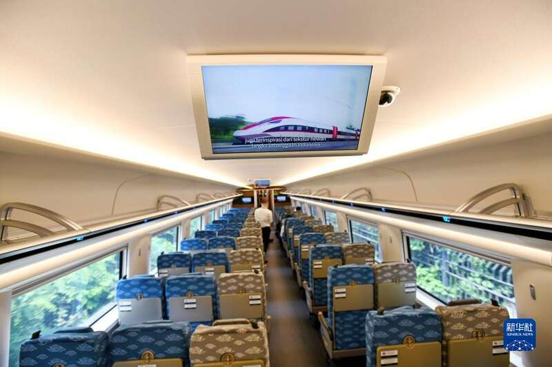 这是8月5日在位于山东省青岛市的中车四方股份公司拍摄的雅万高铁高速动车组车厢内部。