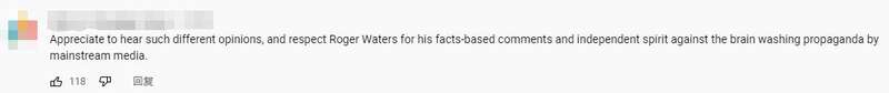 也有网友“感谢听到如此不同的意见,向罗杰•沃特斯基于事实的评论和不被主流媒体宣传洗脑的独立精神致敬。”