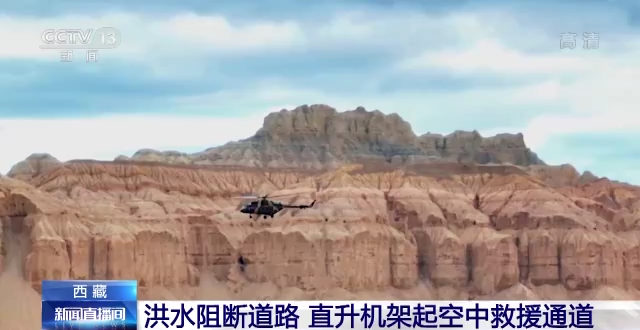 西藏阿里部分地区发生洪灾 道路阻断 直升机架起空中救援通道