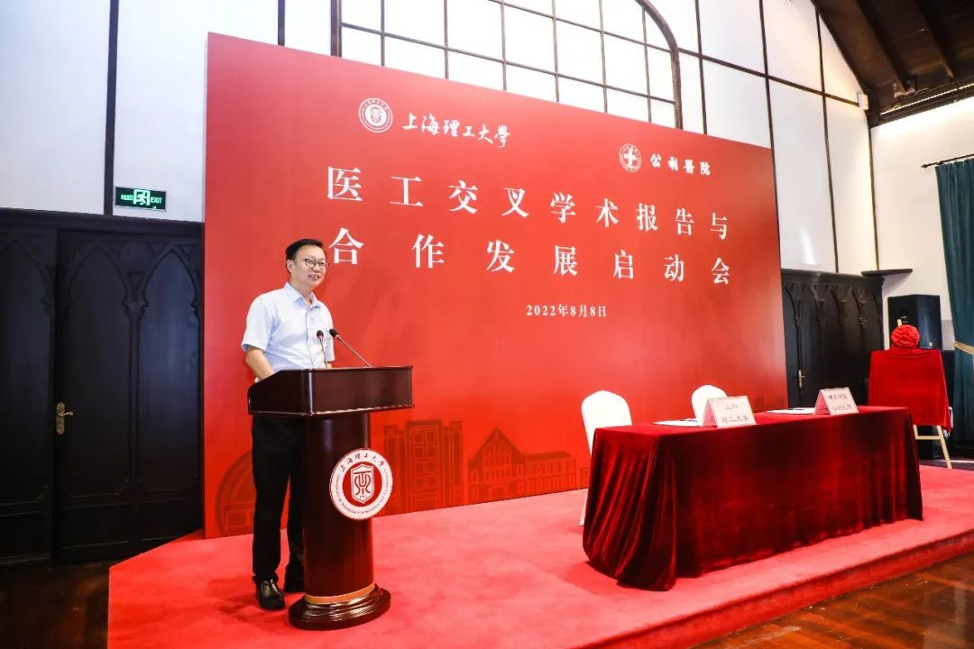 8月8日上午,上海理工大学—上海市浦东新区公利医院医工交叉学术报告与合作发展启动会在学校大礼堂二楼会议厅举行。市卫健委党组书记章雄,市教委副主任孙真荣,浦东新区卫健委副主任郁东海,公利医院院长姜宁、党委书记严建军,校党委书记吴坚勇,校长丁晓东,校学术委员会主任庄松林,校党委副书记孙跃东以及公利医院领导、校相关部门、学院负责人、师生代表参加会议。会议由副校长刘平主持。