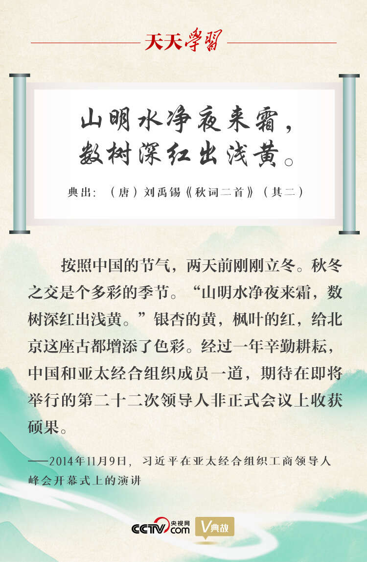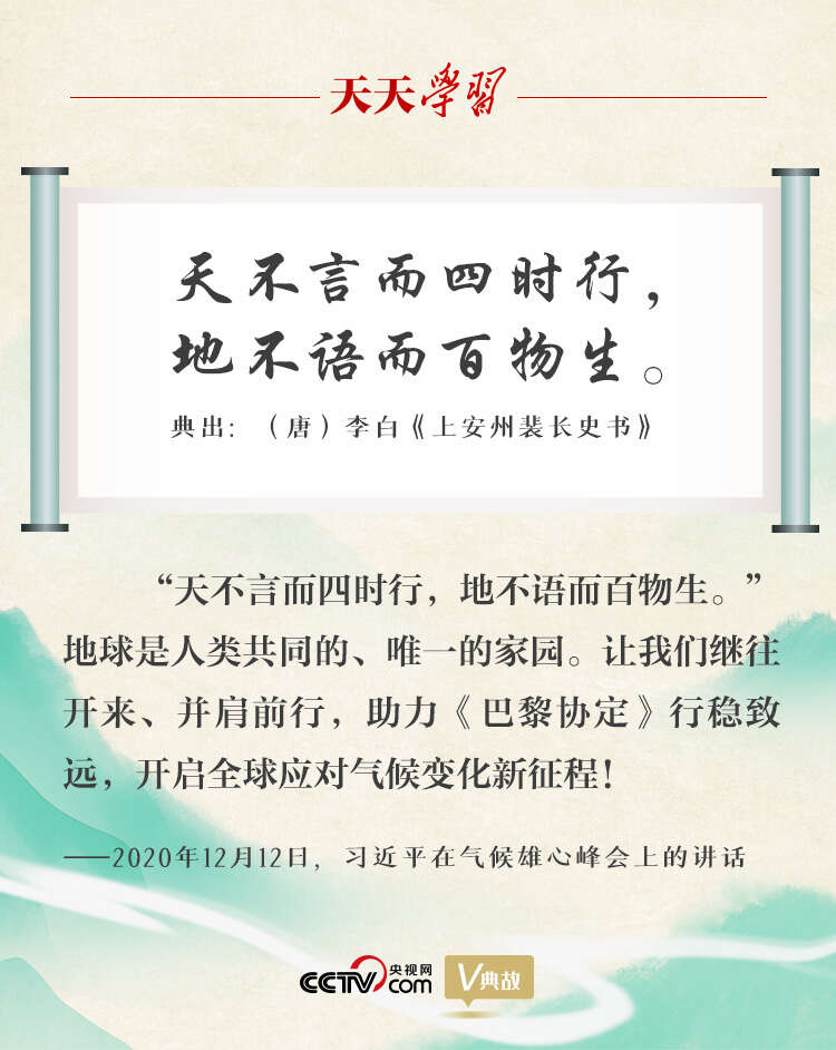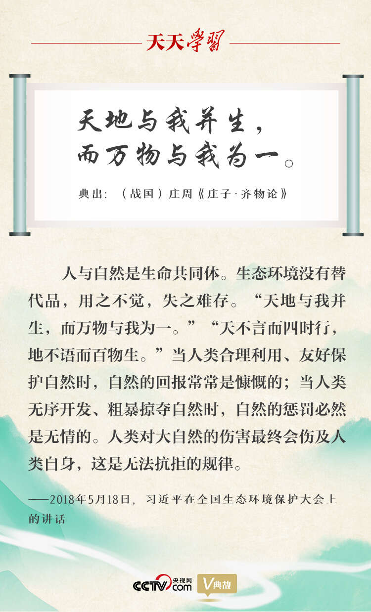 习近平总书记多次在讲话中引经据典,讴歌天蓝地绿水净的美丽中国,“典”赞生态文明新时代。央视网《天天学习》栏目特选取部分用典,与您一起学习领会。