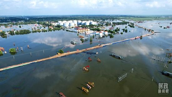 △2022年8月7日,辽宁盘锦绕阳河溃口实现封堵合龙。(图/视觉中国)