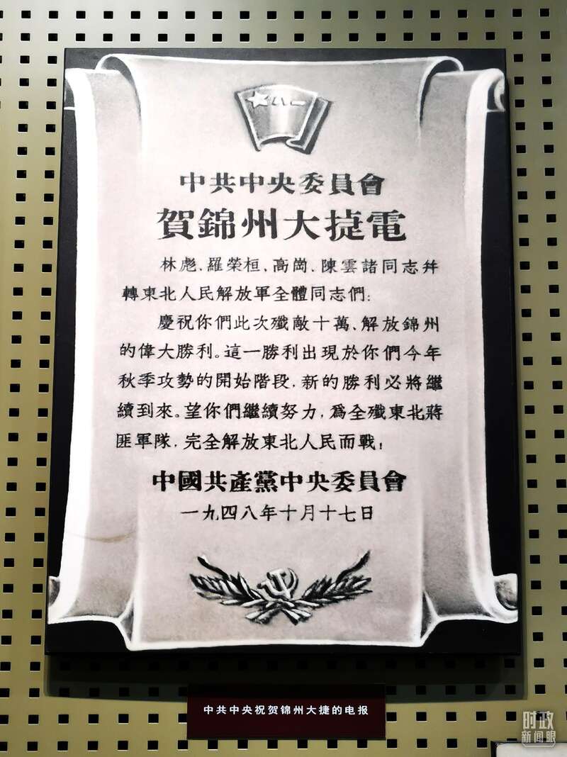 △辽沈战役纪念馆展出,中共中央祝贺锦州大捷的电报。(总台央视记者石伟明拍摄)