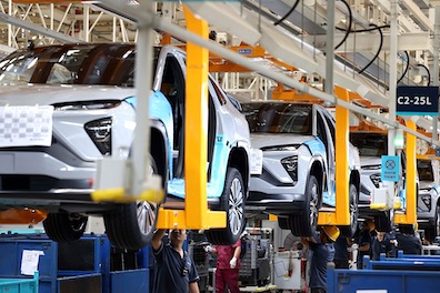 2022年8月28日,在合肥经济技术开发区的一家新能源汽车生产企业,工人在整车生产线上作业。近年来,安徽省合肥市通过建立扶持政策体系,强化科技攻关、推广应用、完善基础设施建设等措施,推进新能源汽车产业快速发展。 新华社 发(解琛 摄)
