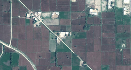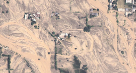巴基斯坦旁遮普省古德普灾前4月4日(上)与灾后8月30日(下)卫星图对比,下同(麦克萨科技)