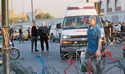 图为8月29日,在伊拉克首都巴格达,救护车驶入“绿区”。