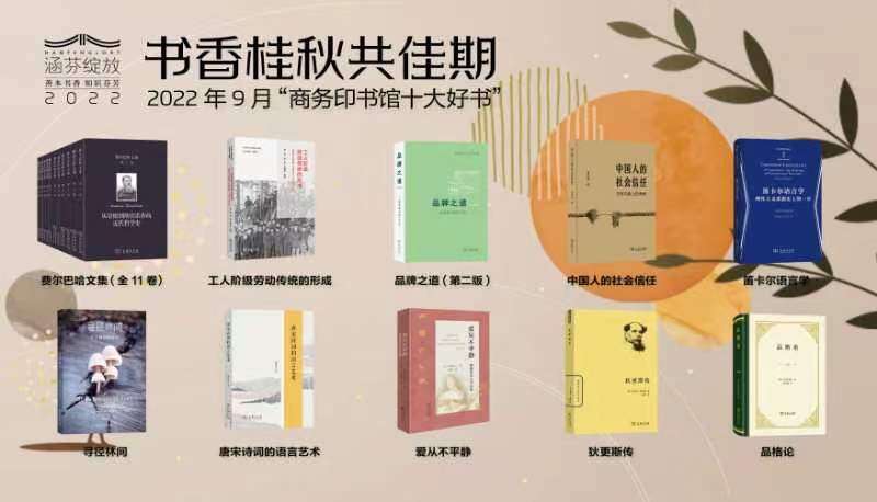 经过读者投票和专家评审,2022年9月“商务印书馆十大好书”正式发布:《费尔巴哈文集》《工人阶级劳动传统的形成:洛阳矿山机器厂口述实录》《品牌之道:商务印书馆125年》《中国人的社会信任》《笛卡尔语言学:理性主义思想史上的一章》《寻径林间:关于蘑菇和悲伤》《狄更斯传》《爱从不平静:塞维涅夫人书信集》《唐宋诗词的语言艺术》《品格论》等入选。