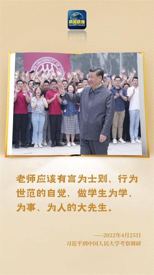 2022年4月,习近平总书记在中国人民大学考察时强调,老师应该“做学生为学、为事、为人的大先生,成为被社会尊重的楷模,成为世人效法的榜样”。