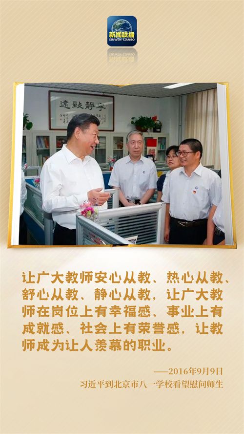 习近平总书记多次强调,要在全社会营造尊师重教的良好风尚,让教师成为“让人羡慕的职业”“最受社会尊重的职业”,让广大教师“安心从教、热心从教、舒心从教、静心从教”。