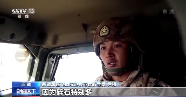 西藏军区高原戍边模范营教导员 尹强:前面都是碎石,大家踩着我的脚印走,一定要注意安全。