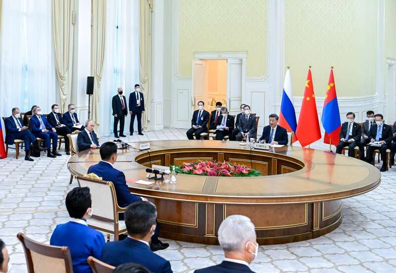 习近平同俄罗斯总统普京、蒙古国总统呼日勒苏赫举行中俄蒙三国元首第六次会晤。