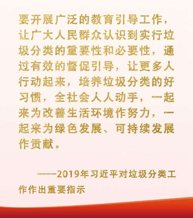 习近平总书记十分关心垃圾分类工作这件“关键小事”。他强调,实行垃圾分类,关系广大人民群众生活环境,关系节约使用资源,也是社会文明水平的一个重要体现。