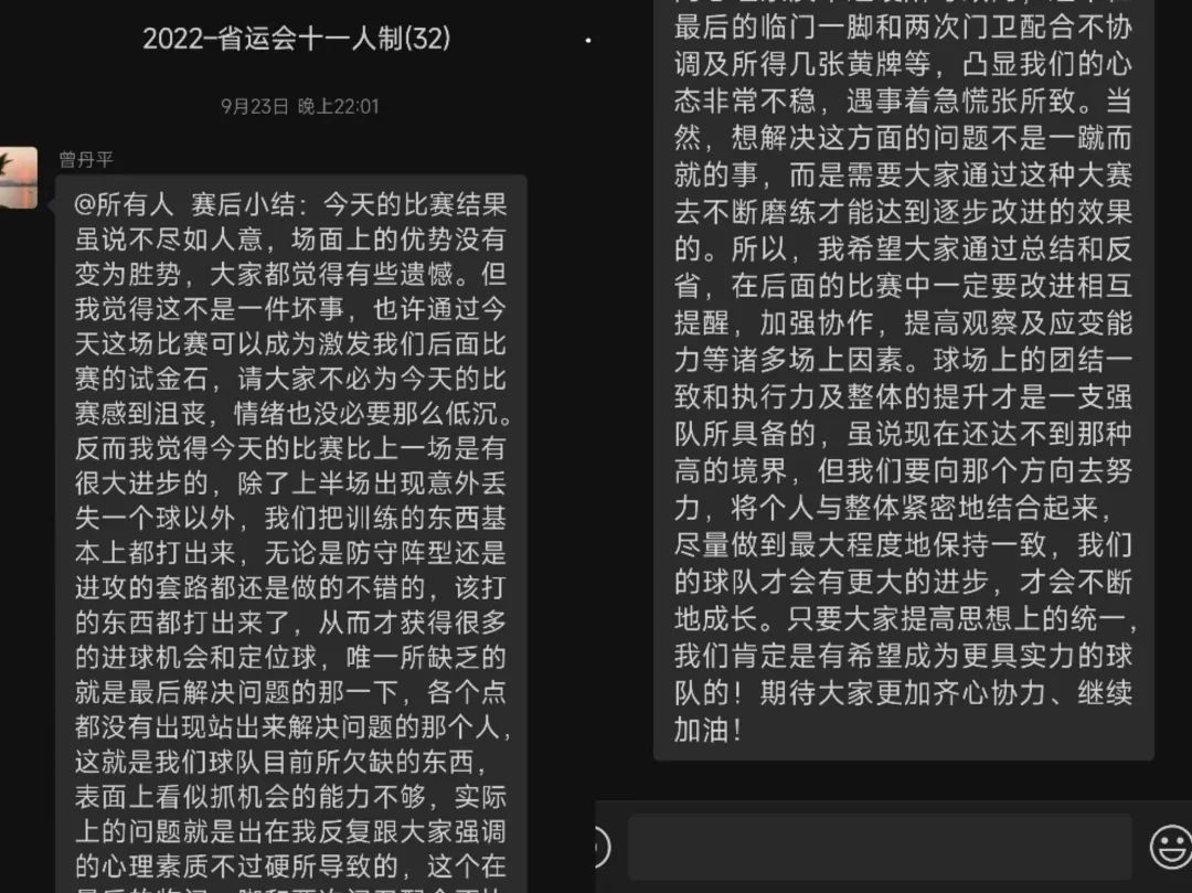 中场休息时,曾丹平教练要求以防守为主,限制对手传球配合,前场队员回收,中场队员收紧,伺机反击。第80分钟,队长4号欧阳铭禹找准时机,左脚破门再度改写比分。队员们越战越勇,将这一优势比分定格到了最后一刻。