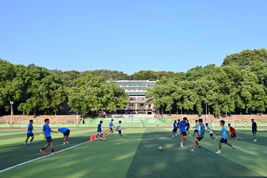 球队的训练早从七月份就开始了,假期先采用了网训的方式。郭浩洋教练制定了详细的训练计划,队员们通过keep打卡,坚持进行力量和耐力的训练。同时搭配颠球,传接球,长传球练习,保持球感。在家里或者附近的运动场,心里装着一份足球的梦想,哪里都是他们的训练场。重复又略显枯燥的动作训练,将技术动作变为肌肉记忆,换来了球场上每一次的精彩表现。