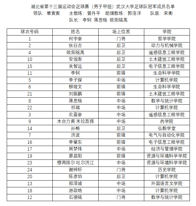 湖北省第十六届运动会青少年体育类(大学生组)暨湖北省第十三届大学生运动会足球比赛决赛后,武汉大学校园组男子足球队,时隔多年再次捧起冠军奖杯。