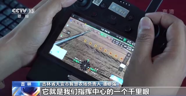 吉林省大安市智慧农场负责人 潘修强:我们巡视的无人机已经开始起飞了,它就是我们指挥中心的一个千里眼。我们要是没有这个巡视的无人机呢,我们每个田块,就十五垧地就得需要人去看。现在有它呢,就可以代替50个人的巡视效果。
