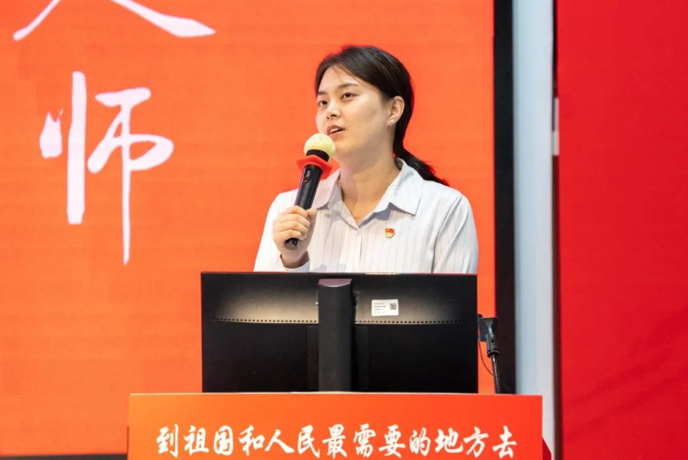 “优师计划”师范生代表李若雨同学分享了她“从霓虹灯到满天星”的故事。作为一名省来县去的师范生,她希望自己能在北师大红色基因的浸润下,通过对教育的热爱和对教学的热情奔赴未来的教师岗位,到祖国和人民最需要的地方去教书育人,以实现更有价值的人生。